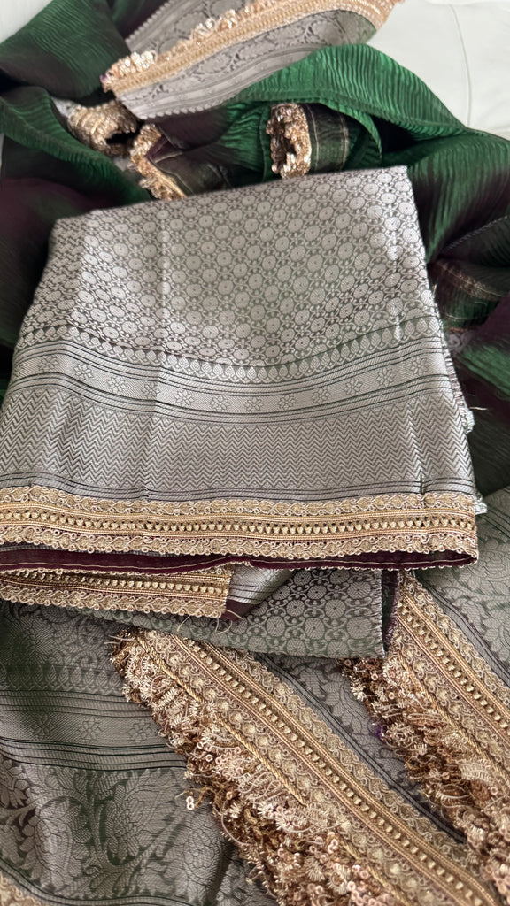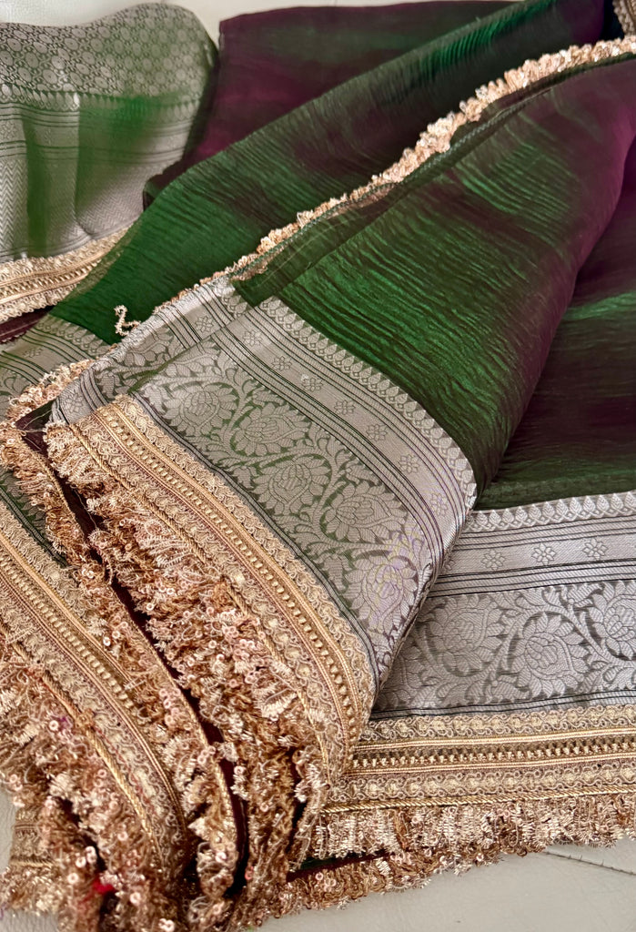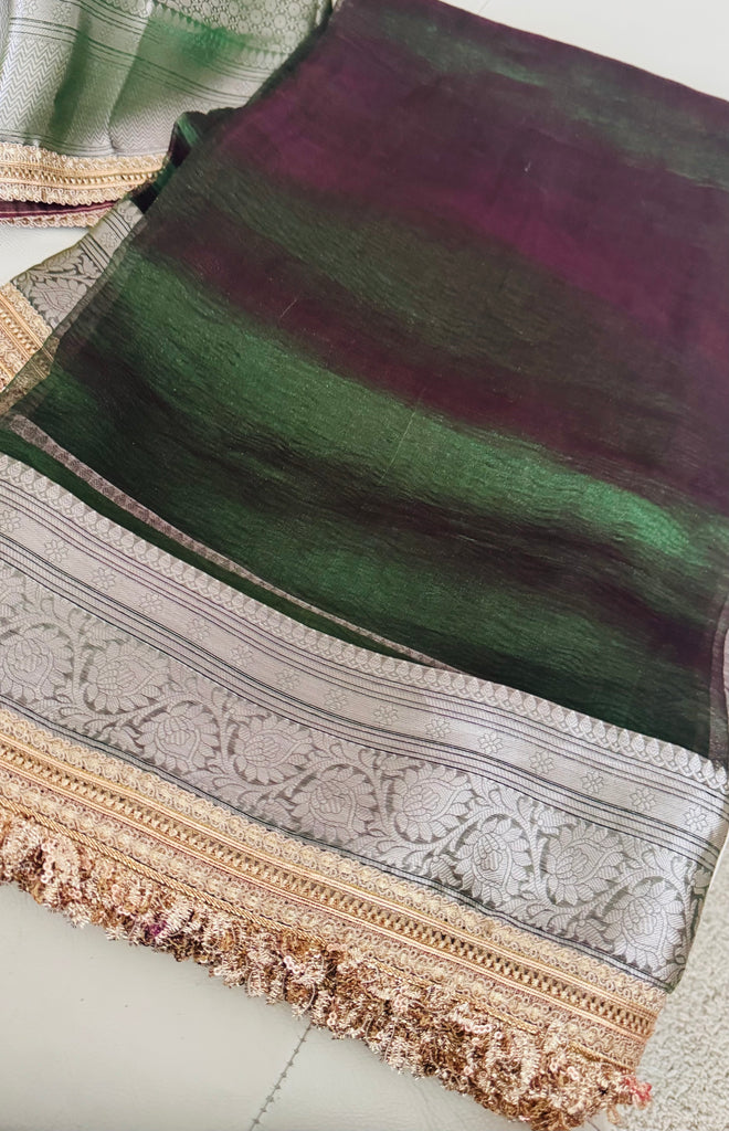 Iridescent Green Tissue Banarasi Brocade Silk Saree