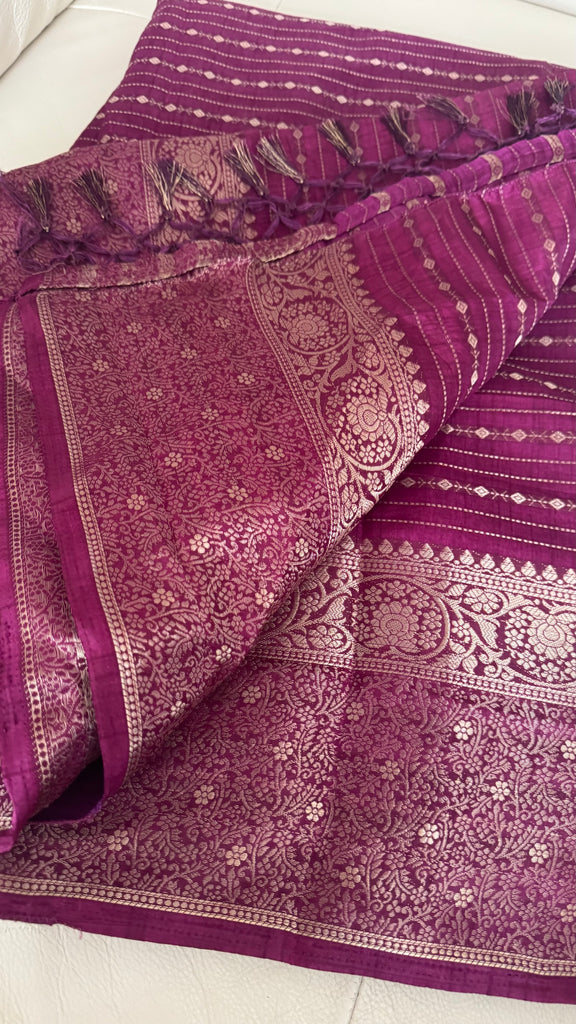 Drenched in deep, soulful huesâTussar Munga Banarasi sarees adorned with gold &weaves and a hint of vibrant meenakari magic. Lightweight Saree with TasselsÂ