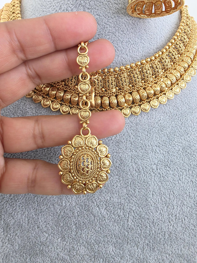 - Antique Mukut Gold Bridal Necklace/South Indian Jewelry/Bridal Jewelry/Gold Necklace/Wedding necklace/Bridal necklace/Indian wedding jewelry