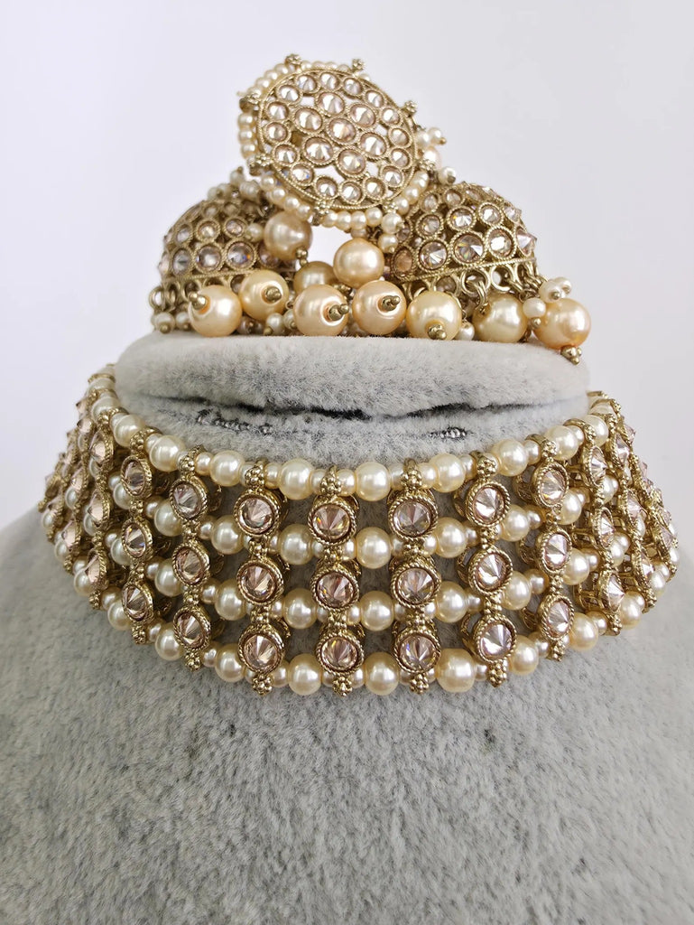 - Antique polki Reverse AD necklace with mehendi dull gold plating