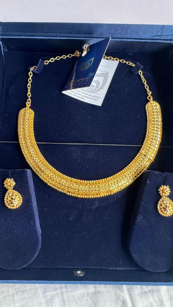 Look beautiful in this Citigold Gold Plated Necklace and Earring Set (Sonar Jawl).