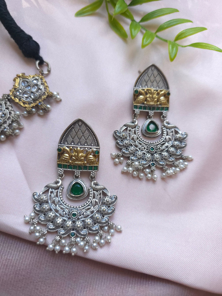 Silveralike Dualtone Brass Choker Necklace and Earring Set
