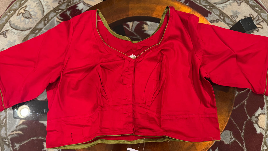 Red Cotton Elbow Sleeve Durga Embroidered Blouse on Back