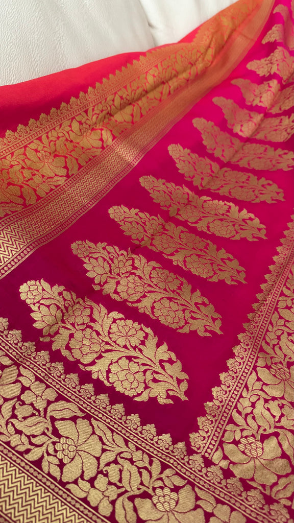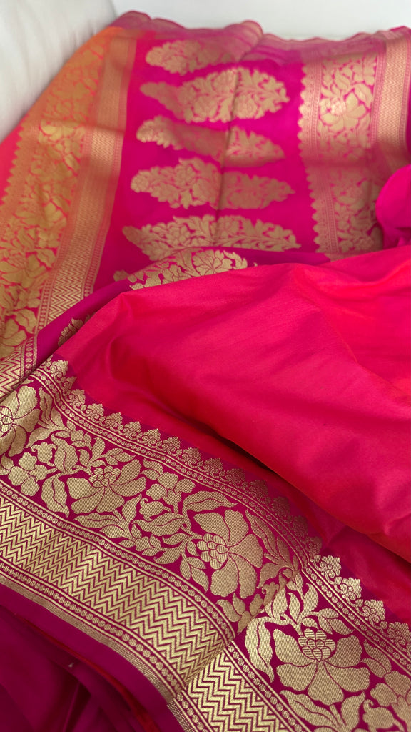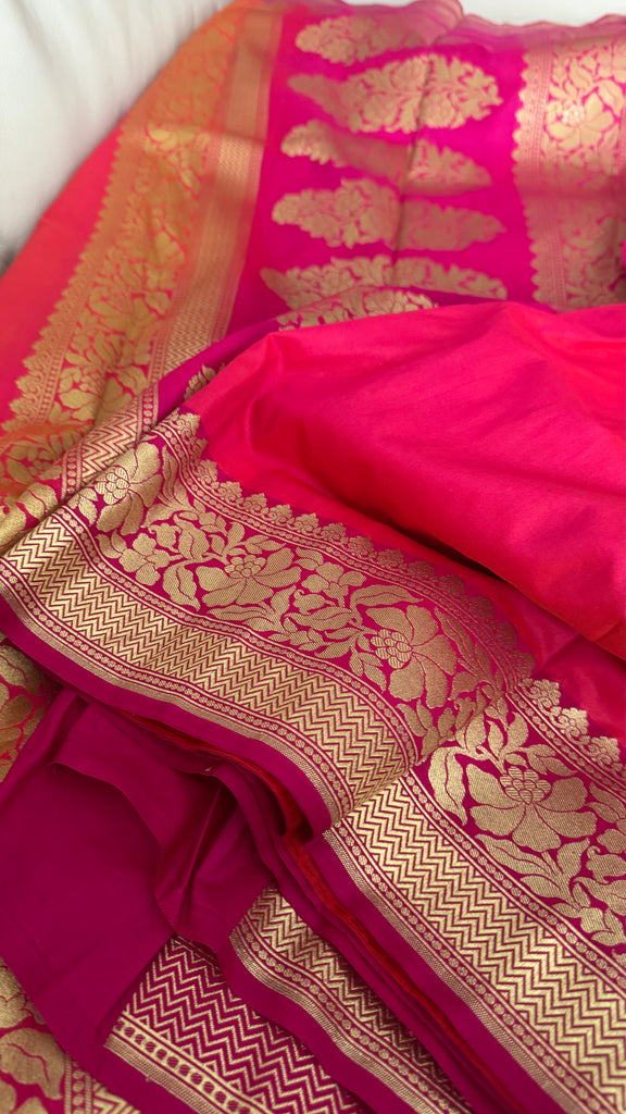 Iridescent Coral Pink Silk Saree