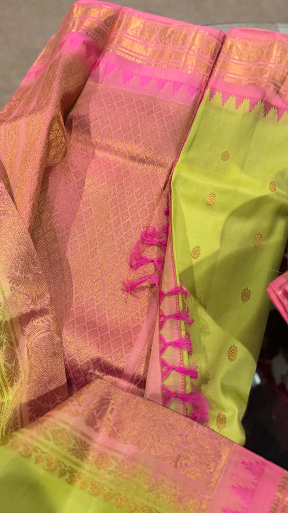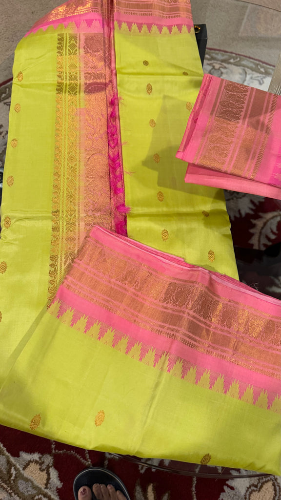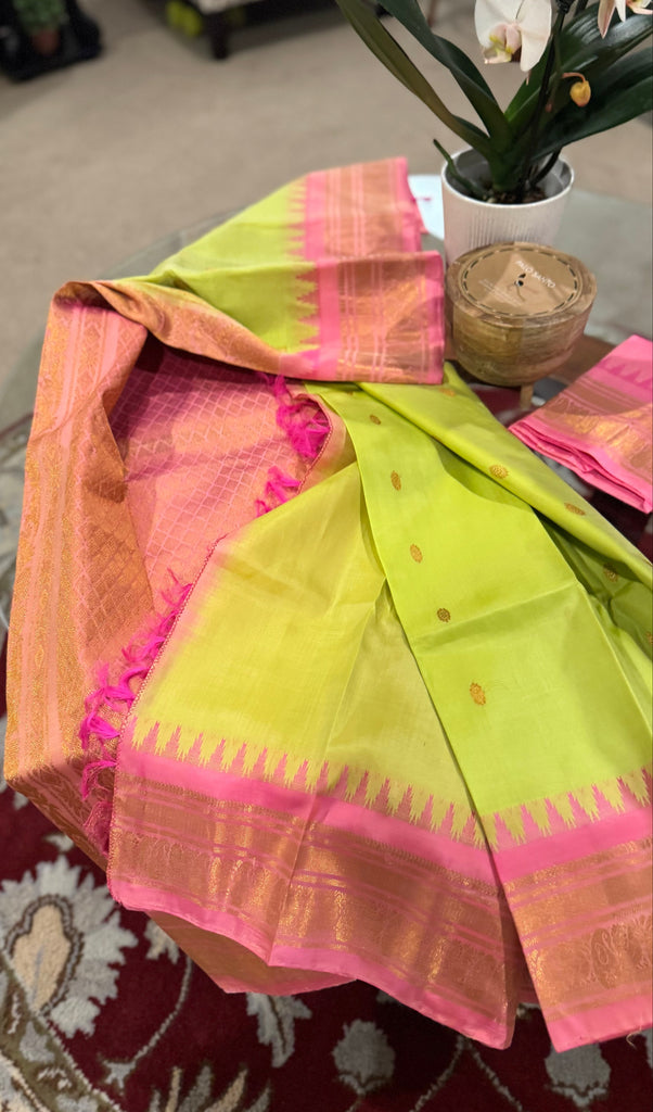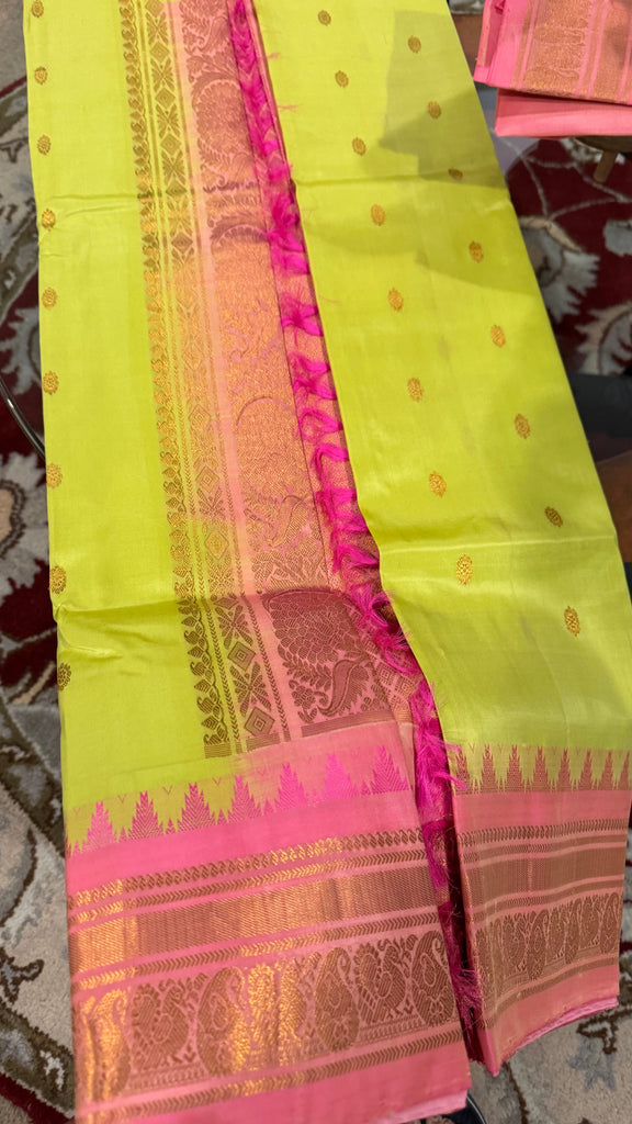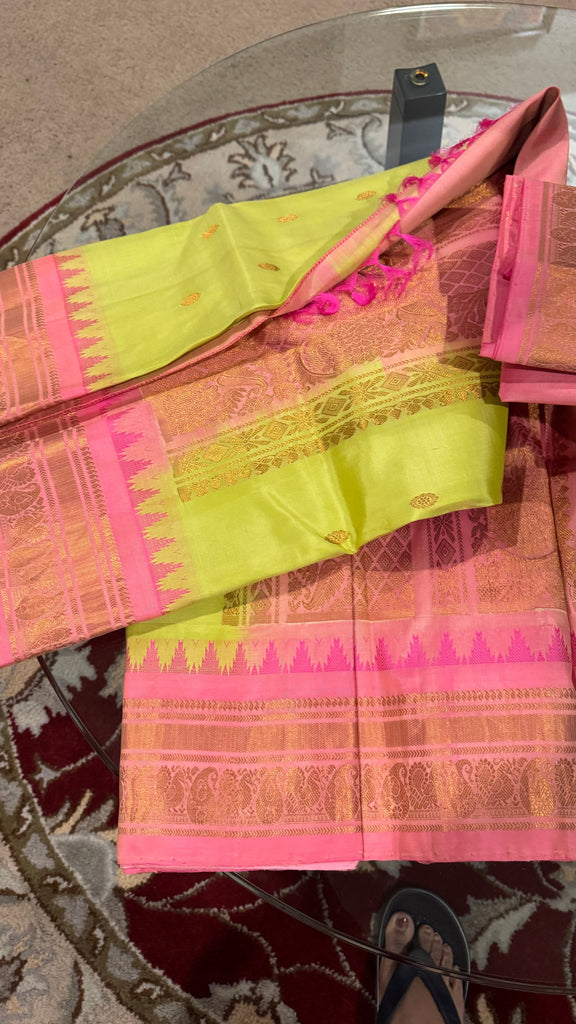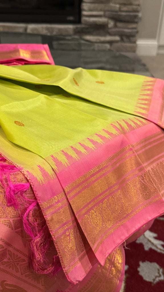 Mint Pistachio Green and Pink Pure Silk Handloom Gadwal Saree
