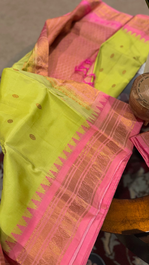 🍁CONTRAST KUTTU TEMPLE BORDER AND RICH JARI PALLU🍁
