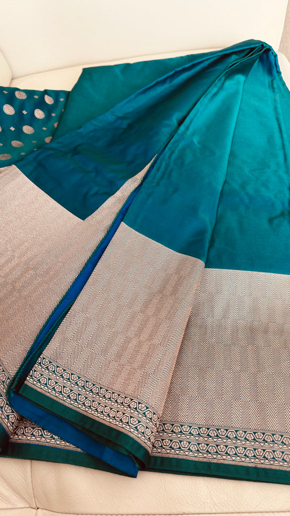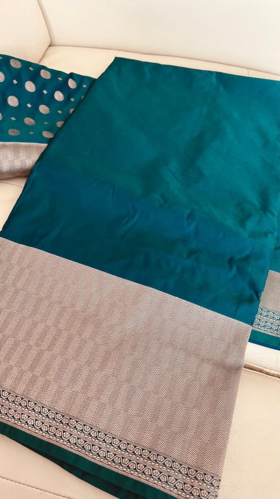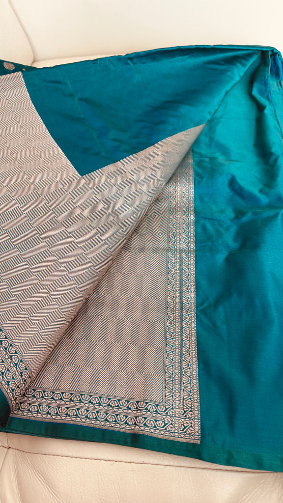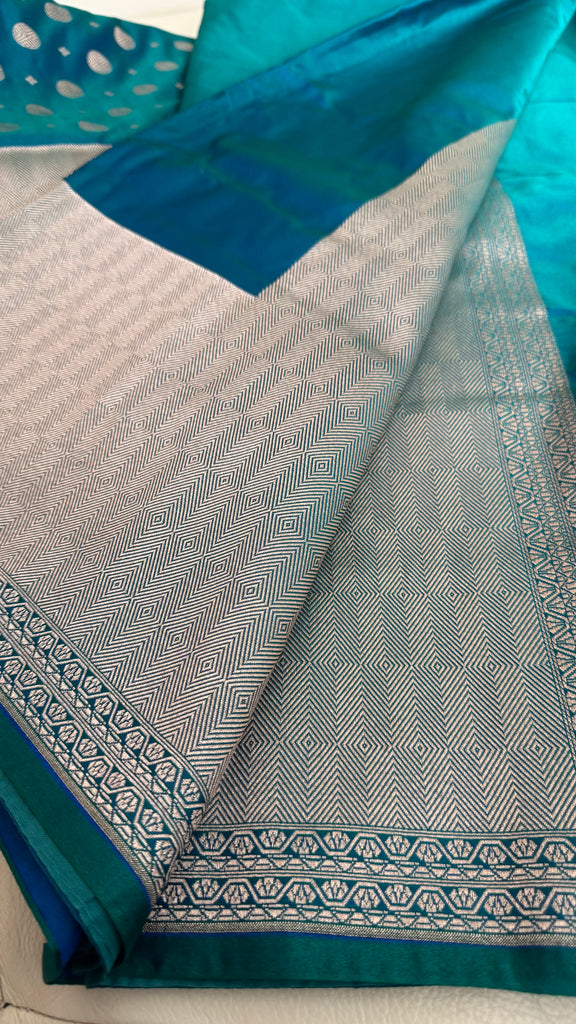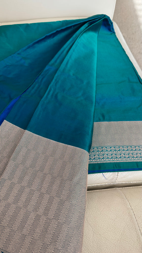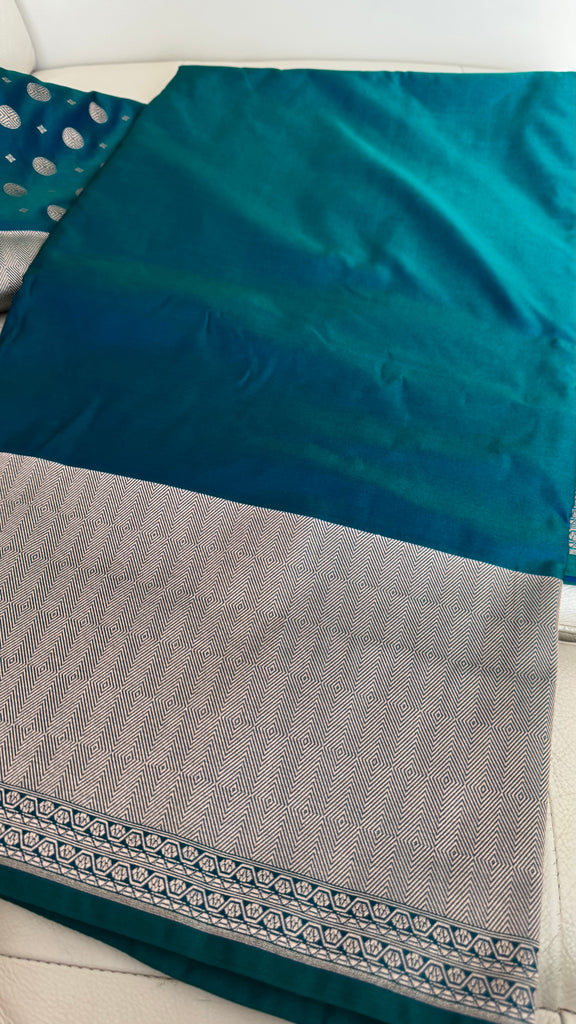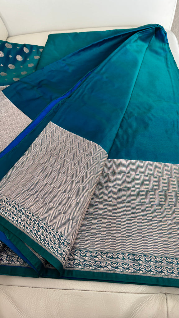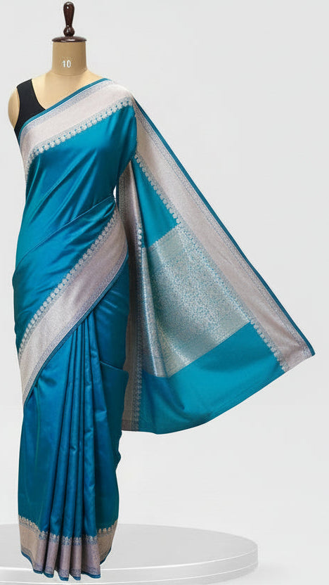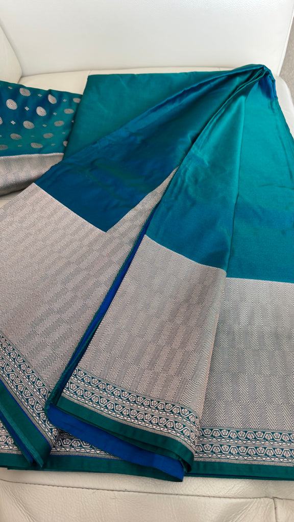 Soft Banarasi Silk Saree Iridescent Peacock Blue With Zari Border