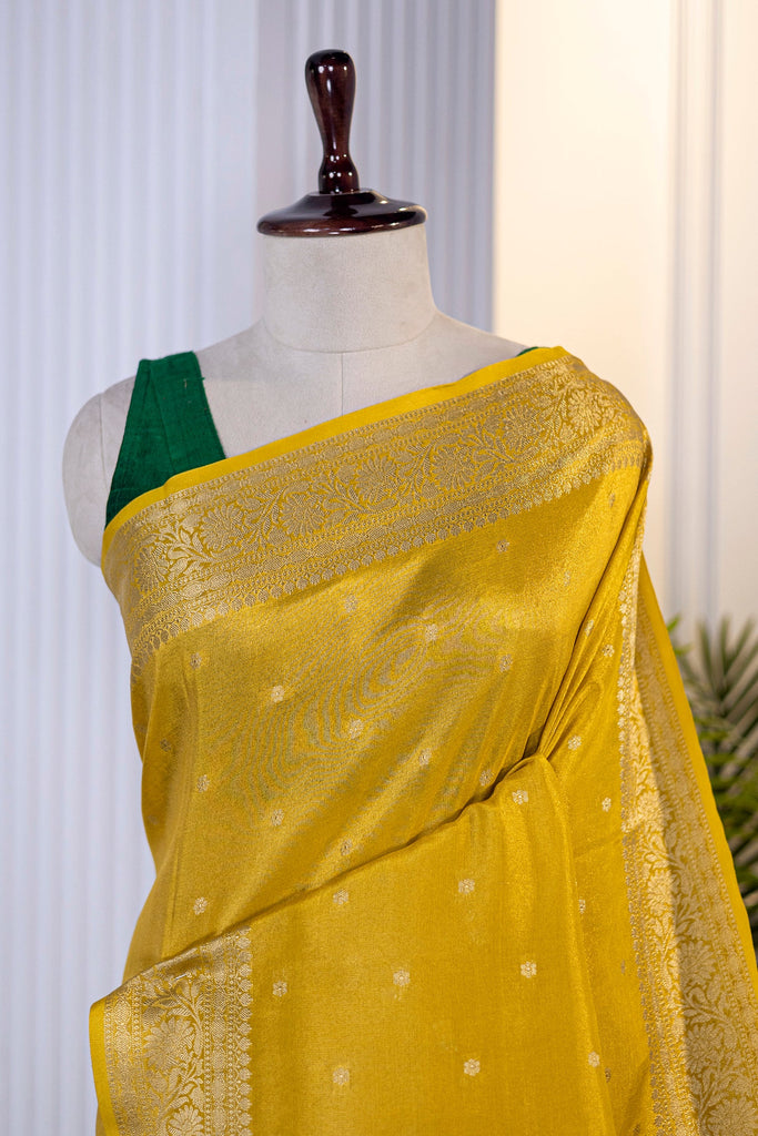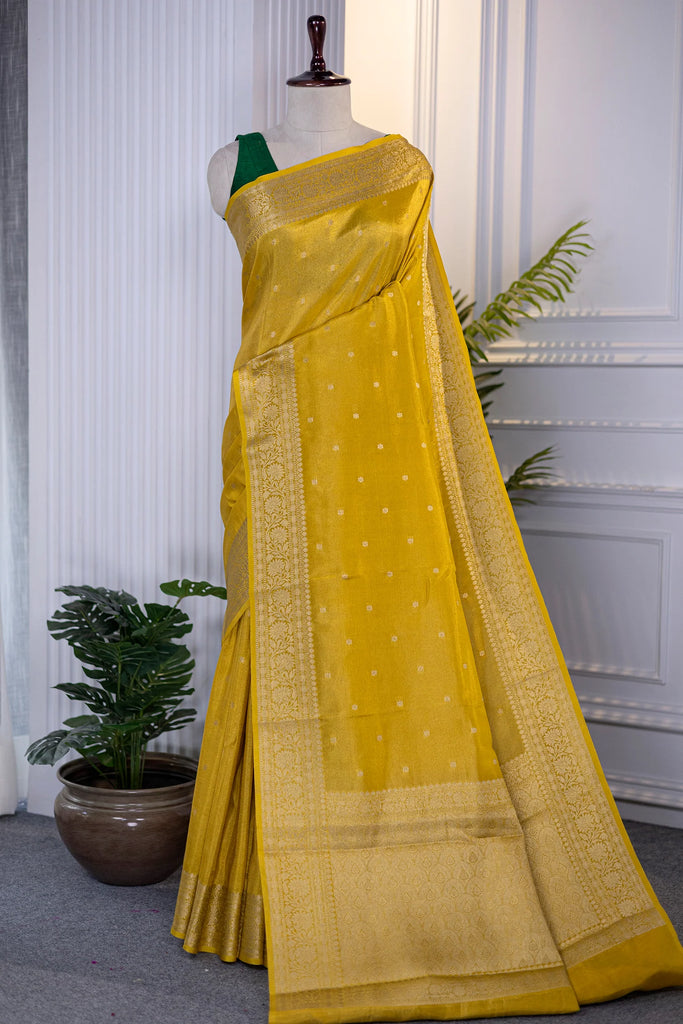 Yellow Handloom Cotton Silk Tissue Banarasi